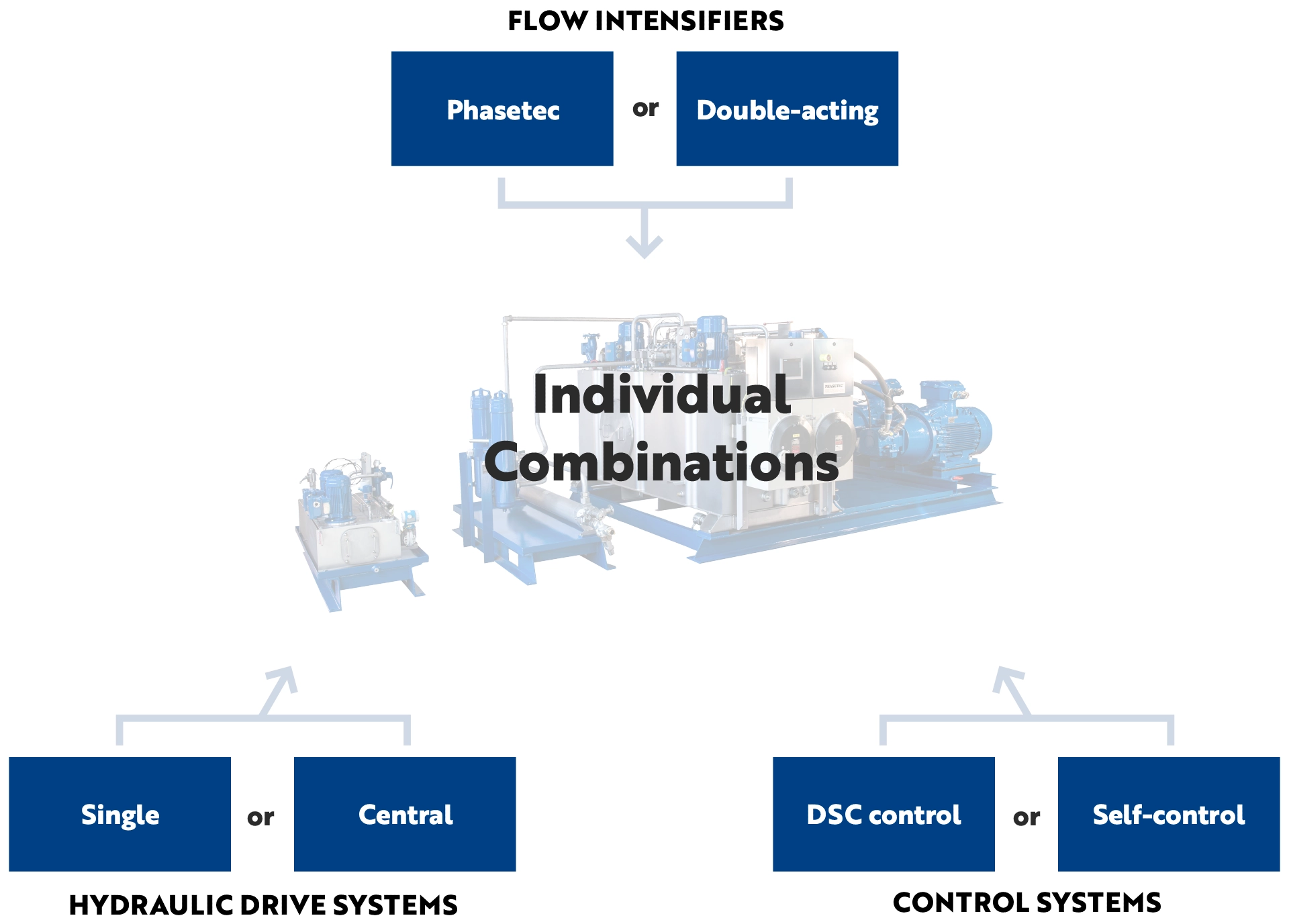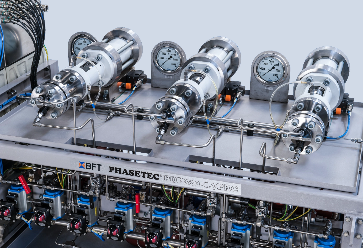 All peroxide dosing pumps can be equipped with an optional second intensifier as a stand-by unit. At the push of a button, it is possible to switch from the first intensifier to the second during operation.